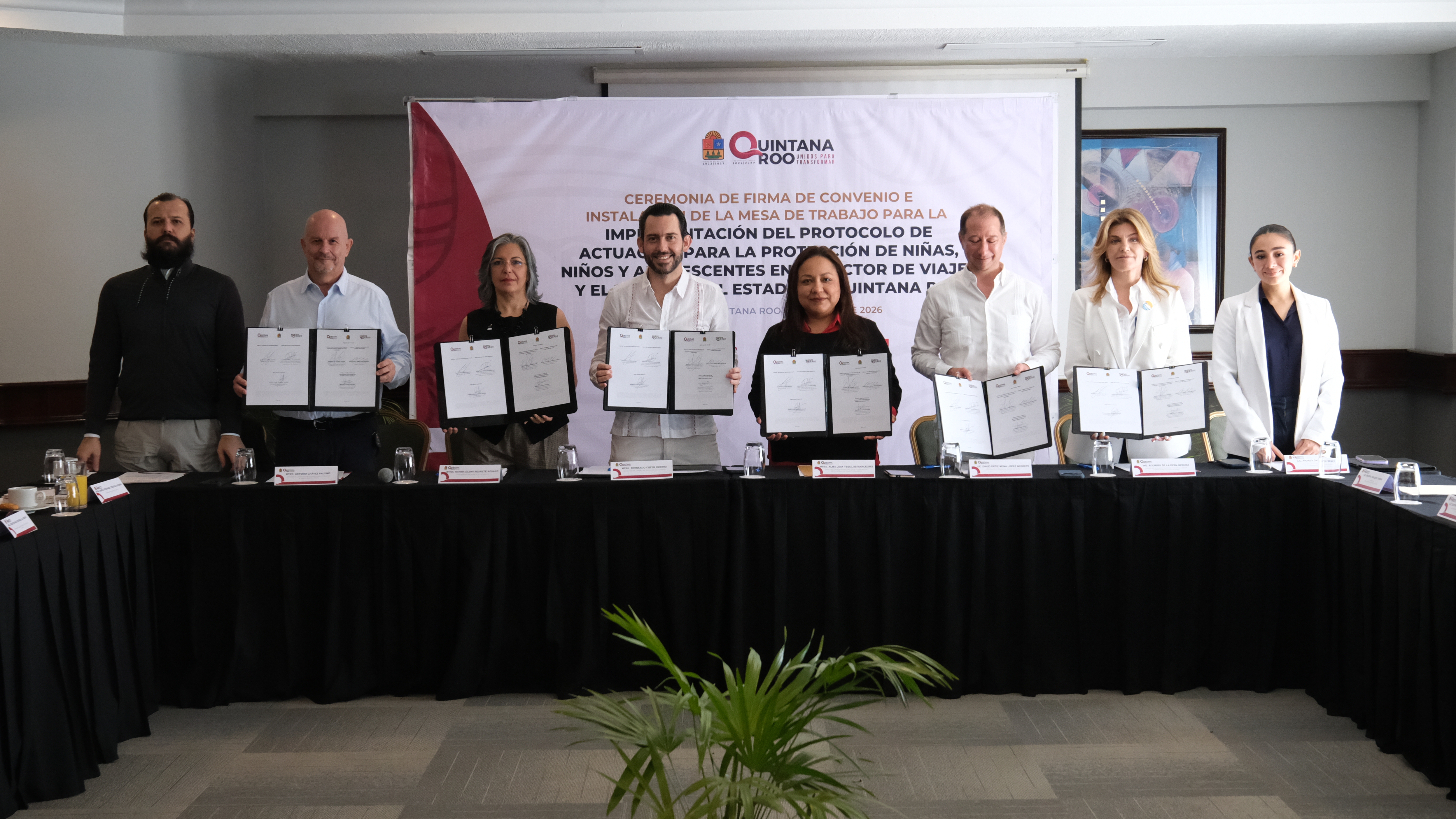 Ceremonia de Firma del Convenio e Instalación de la Mesa de Trabajo para la Implementación del Protocolo de Actuación para la Protección de las Niñas, Niños y Adolescentes frente a la Explotación Sexual Comercial en el Sector de los Viajes y el Turismo, del estado de Quintana Roo.